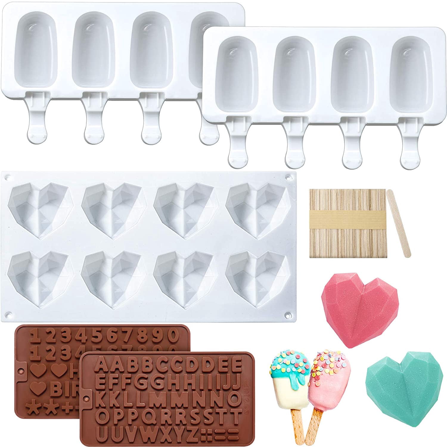 Kitchen Dining Home 8 Cavities Heart Shaped Cake Mold Silicone Diamond Heart Mold 2 Pcs Letter Number Chocolate Molds 2 Pieces Popsicle Chocolate Molds 4 Cavities Ice Pop Molds With 50